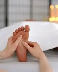 Reflexología es la práctica de estimular puntos sobre los pies, manos, nariz u orejas (llamados zonas de reflejo), para tener un efecto benéfico sobre otras partes del cuerpo, o mejorar la salud general.